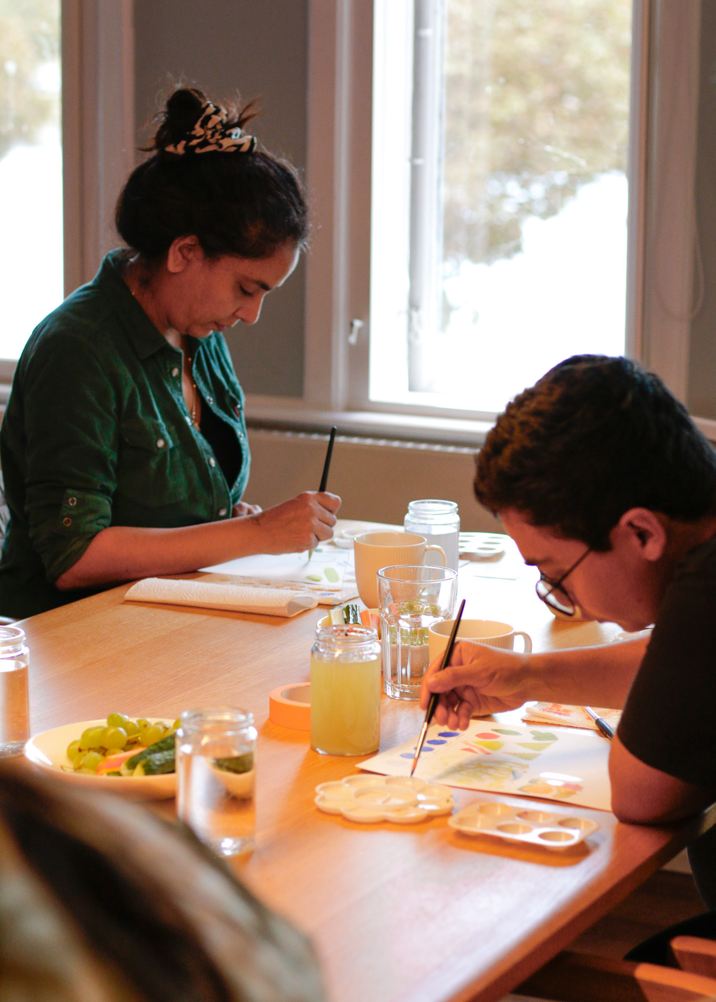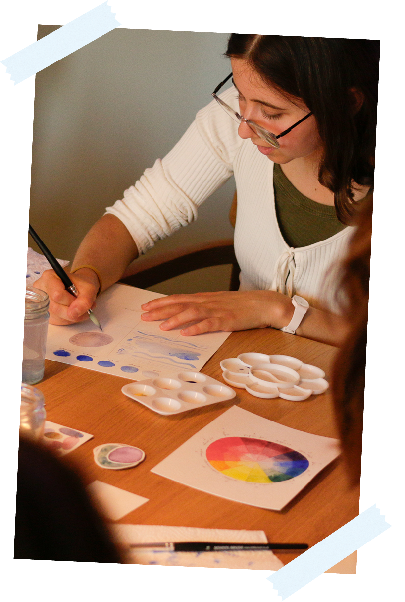 My teaching interests lie in meditative art practices, watercolours, botanical illustration, gouache, colour mixing & theory, observational drawing, playful mixed media art, drawing on location, character design, and interactive art (e.g pop up books).